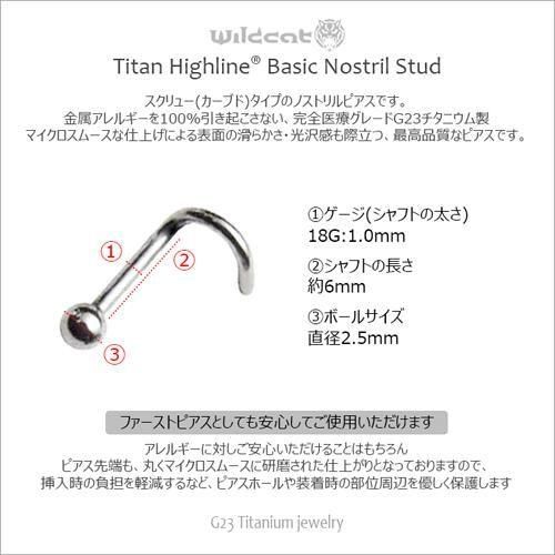 ボディピアス 鼻ピアス 無金属アレルギー 18G サージカルチタン G23 titanium ノストリルスタッド ノストリルスクリュー 鼻用ピアス Nostril Wildcat ワイルドキャット