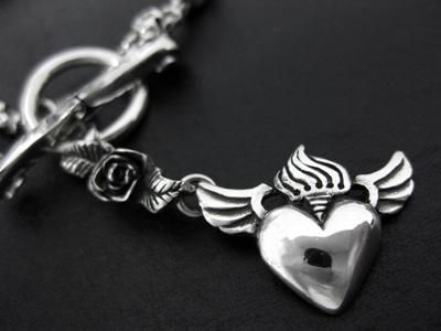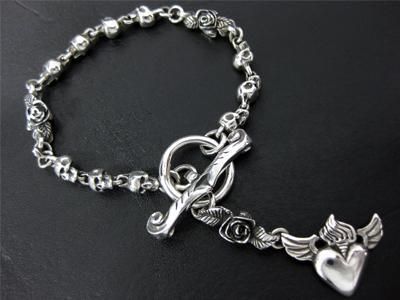 【CP-884f】【CRAZY PIG】 Rosary Skull Bracelet / T-bar & Heart