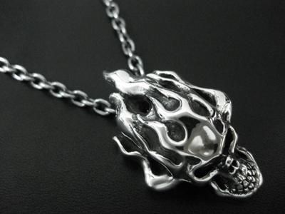 激しく燃えさかる炎に包まれたスカルがハードなフォルムを演出するブレイズスカルペンダント。