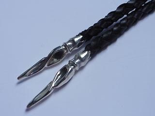 シャープなデザインのシルバーチップを配した、4つ組み革紐ペンダントループです。