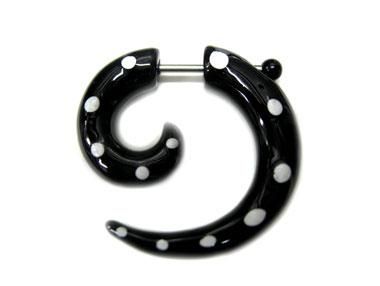 16Gのホールにシャフトを通し装着すれば、約2Gのスパイラルを通しているようにコーディネイトできるフェイクピアスです。