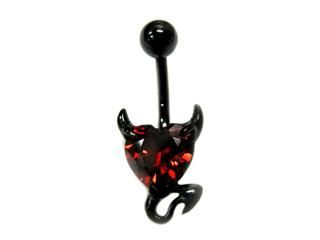 ハート型のラインストーンに悪魔の角と尻尾が生えたキュートなモチーフのベリーボタンです。