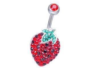 イチゴのモチーフをスワロフスキーで表現するとこの通り!最高にキュートなへそピです。